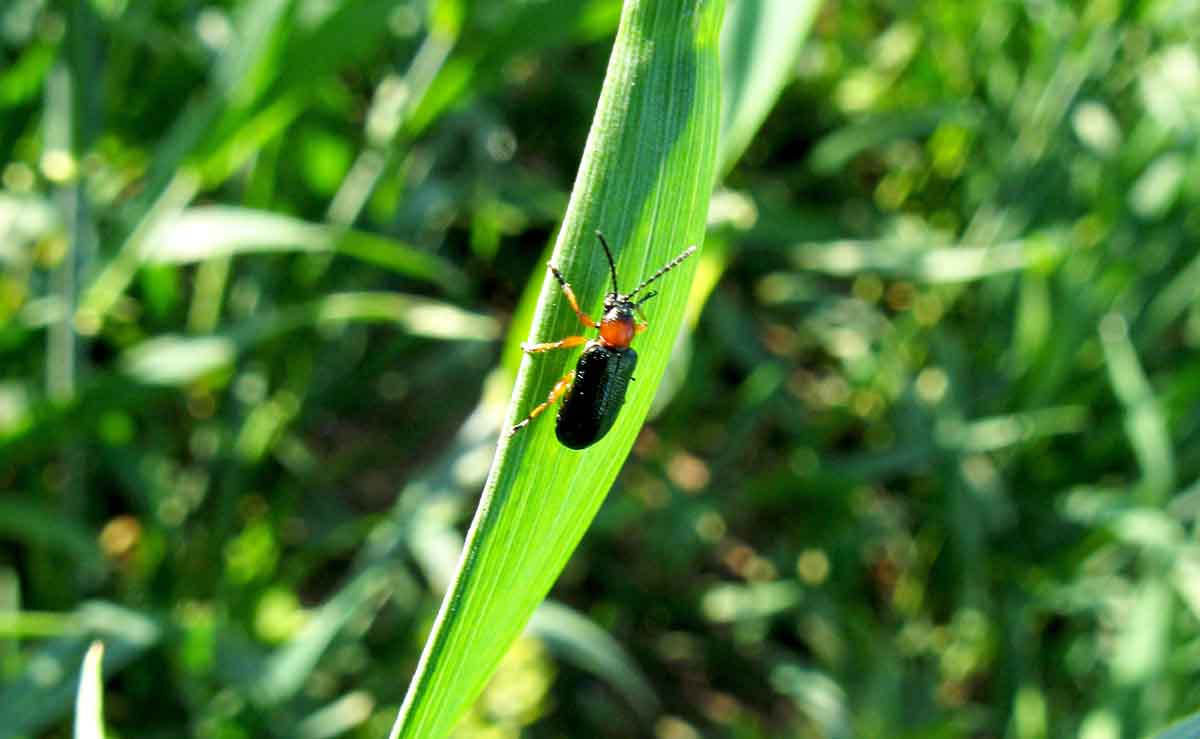 Škůdci ozimé pšenice - střední a lokálně až silné výskyty kohoutků, mšic - kyjatky osenní, mšice střemchové a třásněnek odpovídal průběhu počasí a většina silněji ohrožených porostů byla ošetřena alespoň pyretroidem při aplikaci fungicidu.
