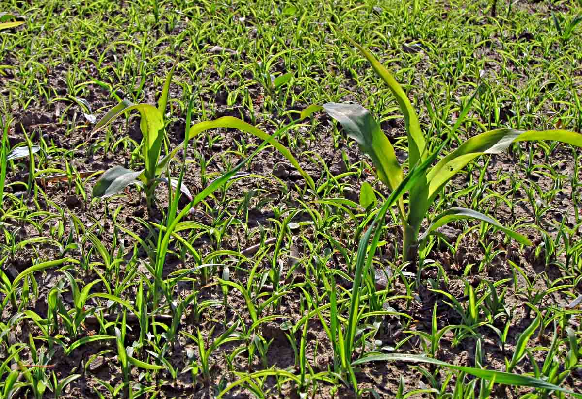 Vegetace - Výsev probíhal v dubnu. Chladno ještě v první polovině května poněkud zpomalovalo vzcházení a další růst kukuřice. Další průběh vegetace po oteplení byl již pro většinu porostů s dostatkem srážek příznivý. Po přihnojení dusíkem začaly porosty rychle dohánět vegetační zpoždění. Aplikace herbicidů byla prováděna většinou postemergentně a některé porosty byly zaplevelené vzcházející ježatkou kuří nohou.