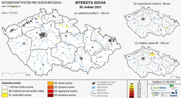 Projevy sucha v jarním ječmeni, jaro 2021