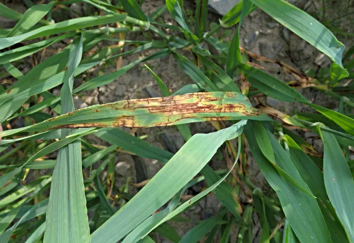 Na neošetřených porostech se při dozrávání vyskytovalo celé spektrum chorob, včetně fuzarióz klasů. Napadení rzí pšeničnou a rzí plevovou se u neošetřených porostů objevilo na citlivých odrůdách až při dozrávání. Výskyt snětí v klasech byl jen minimální. Hodně porostů obilnin bylo po bouřkách lokálně polehlých a místy i silně poškozeno kroupami.
