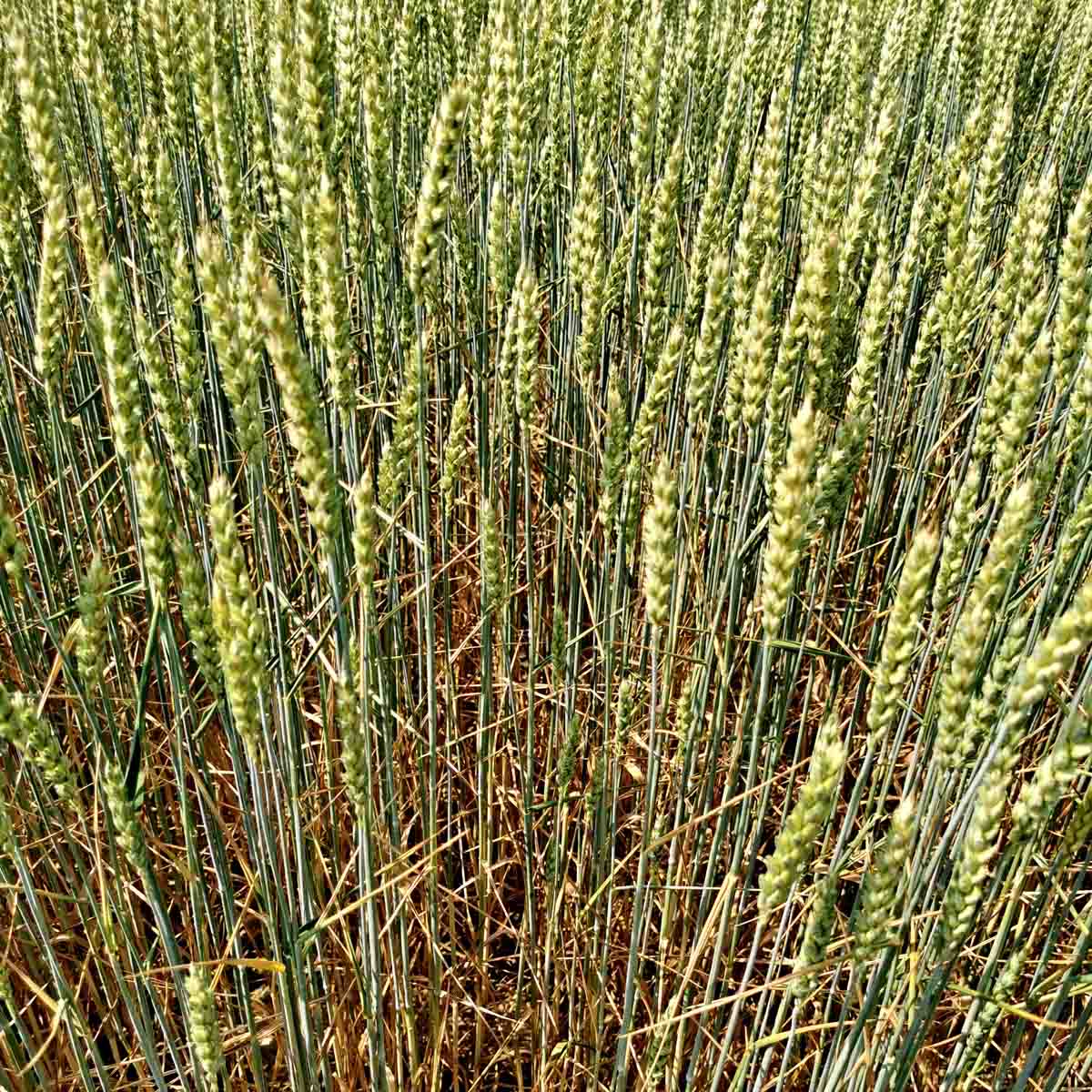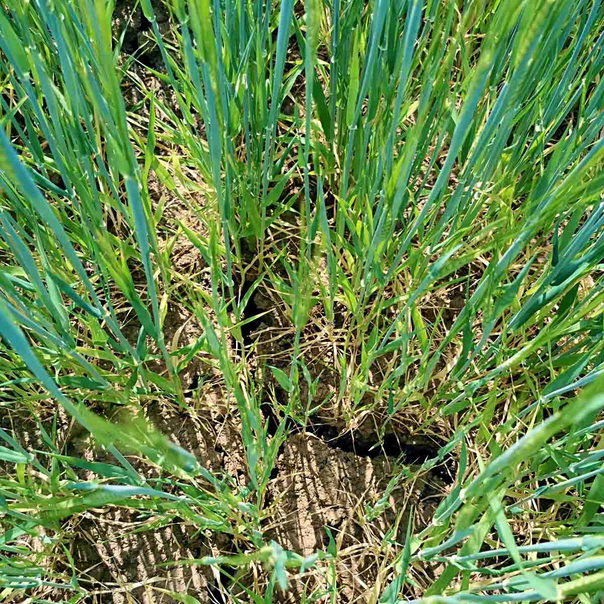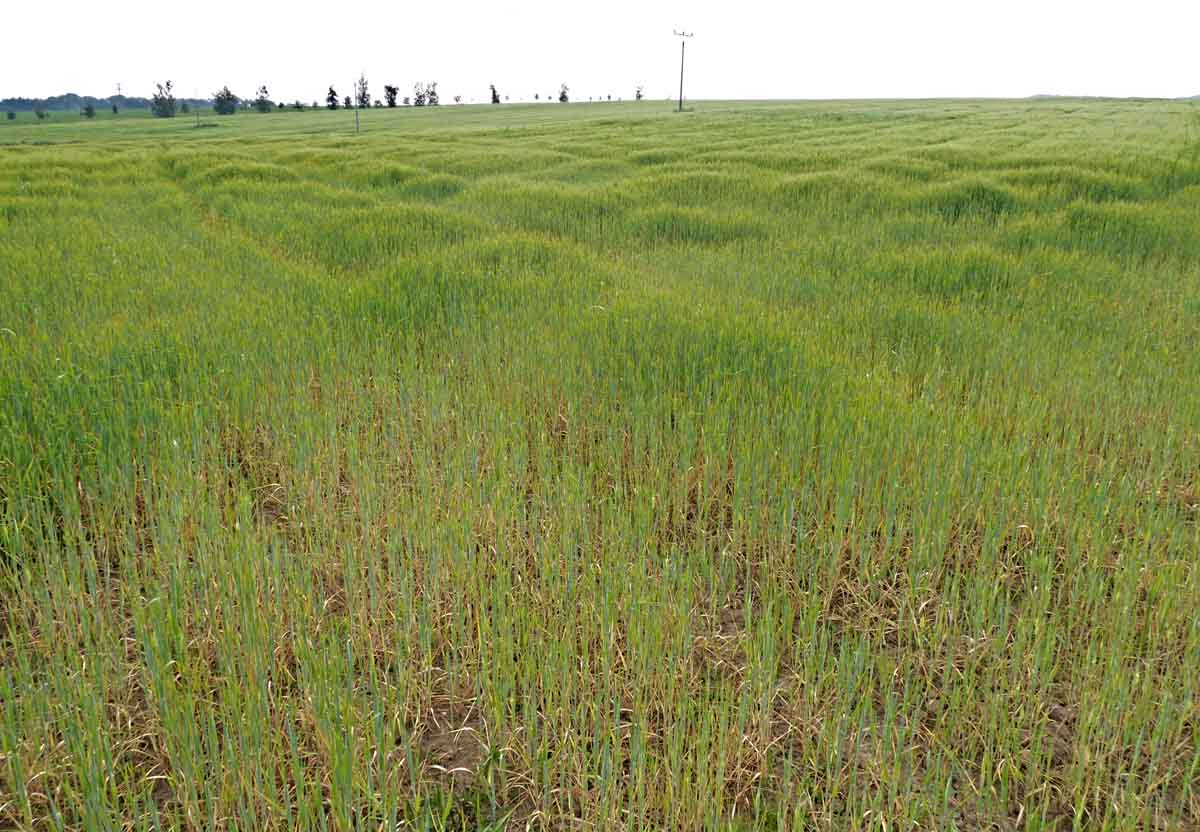 Příznaky virové zakrslosti na pšenici na jaře