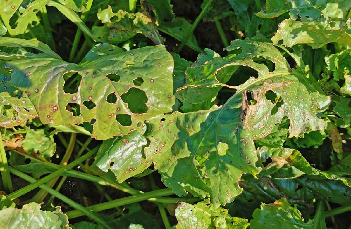 Poškození cukrovky housenkami můr na podzim