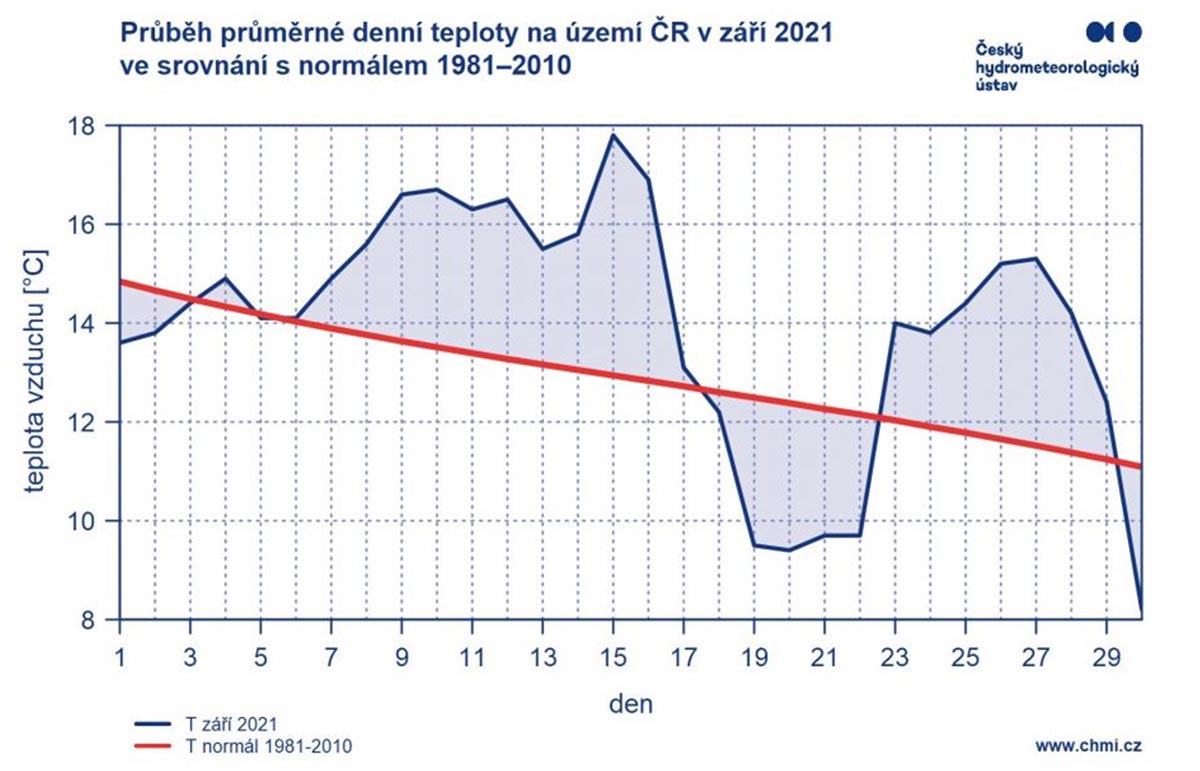 Září bylo na střední Moravě mimořádně teplé (+1,1 °C) a mimořádně suché - v průměru nespadlo ani 50 % dlouhodobého průměru srážek.