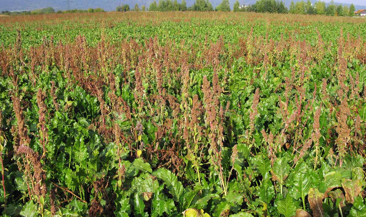 Cukrovka zaplevelená laskavcem