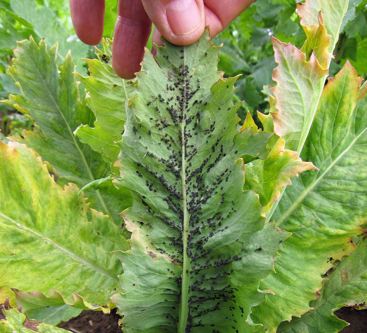 Kolonie mšice makové na listu
