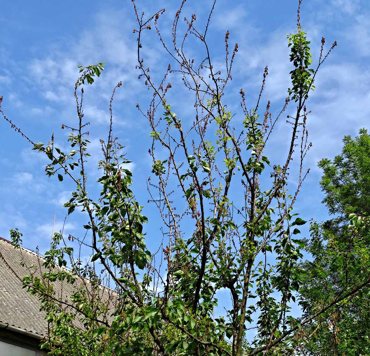 Meruňka poškozená pozdním mrazíkem