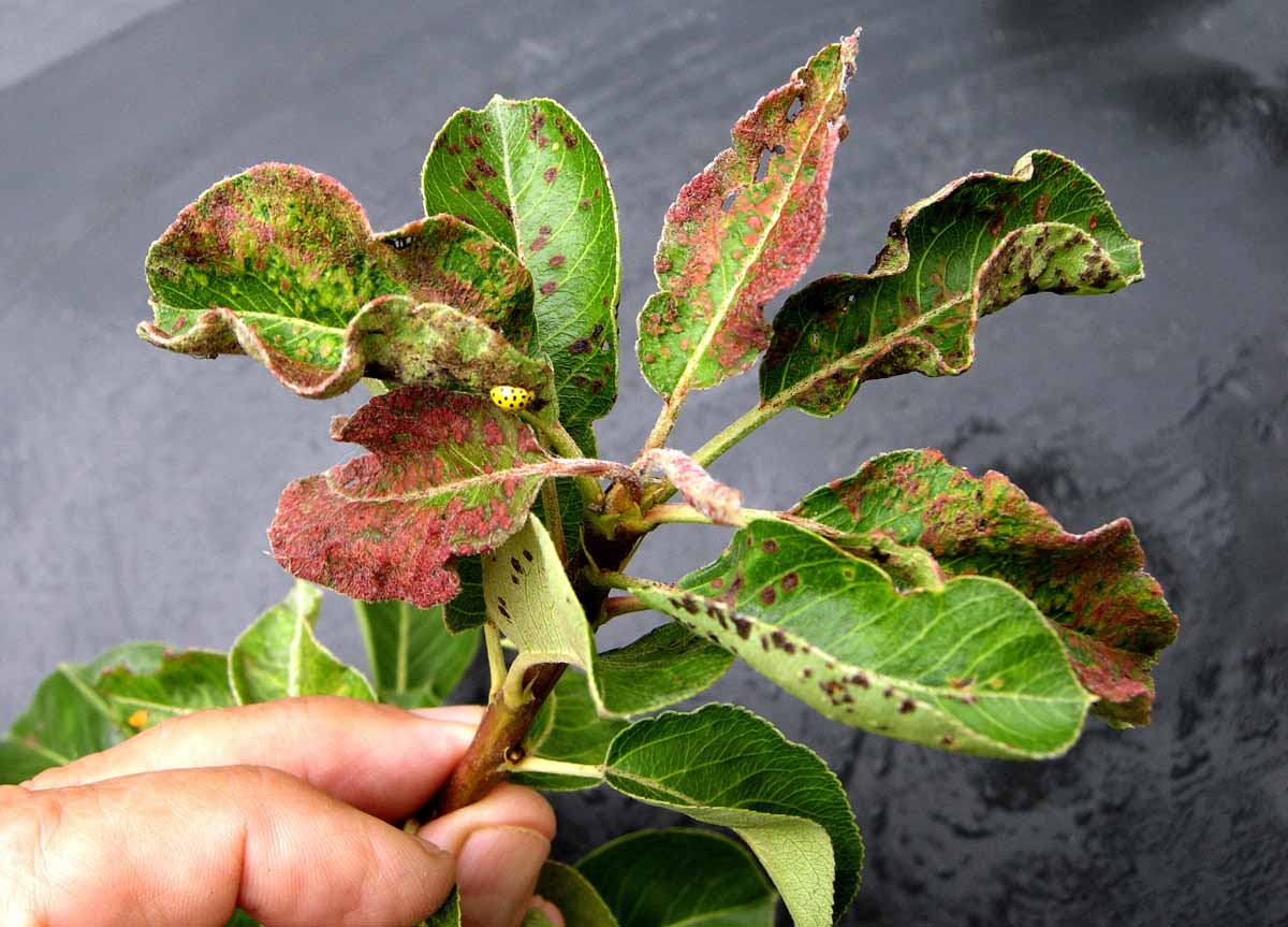 Průběh počasí zpočátku jara podpořil infekci padlí (z vyrašených pupenů infikovaných v létě) a později i strupovitosti a další skvrnitosti listů. Na většině nedokonale ošetřovaných stromech na náchylných odrůdách byly střední až silné výskyty padlí jabloňového a rovněž až silné výskyty strupovitosti jádrovin, místy i na plodech.