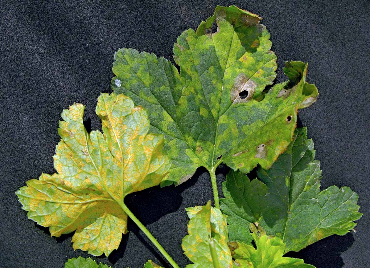 Rez sloupečková na listech rybízu