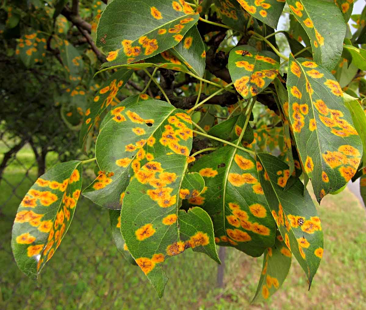 Na hrušních byly navíc až střední výskyty rzivosti hrušně a slabé až střední výskyty hálčivců.