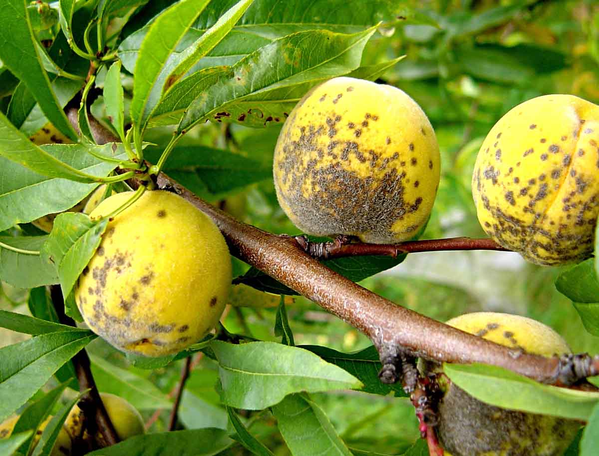Na mnoha místech to bylo obdobné jako u meruněk. Jenom místo moniliového úžehu byla místy většina i středně odolných odrůd broskvoní až silně napadena infekcí kadeřavosti broskvoní. Lokálně byly některé odrůdy napadeny padlím broskvoní, středně až silně strupovitostí peckovin a suchou skvrnitostí peckovin. Takto napadené plody byly následně poškozeny moniliovou hnilobou peckovin.