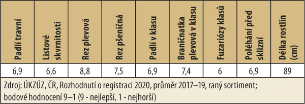 Zdravotní profil odrůdy ukazuje tabulka 2. Charakteristická je odolnost proti rzi plevové, vysoká odolnosti rzi pšeničné i padlí travnímu. Odolnost klasovým fuzariózám je na střední úrovni.