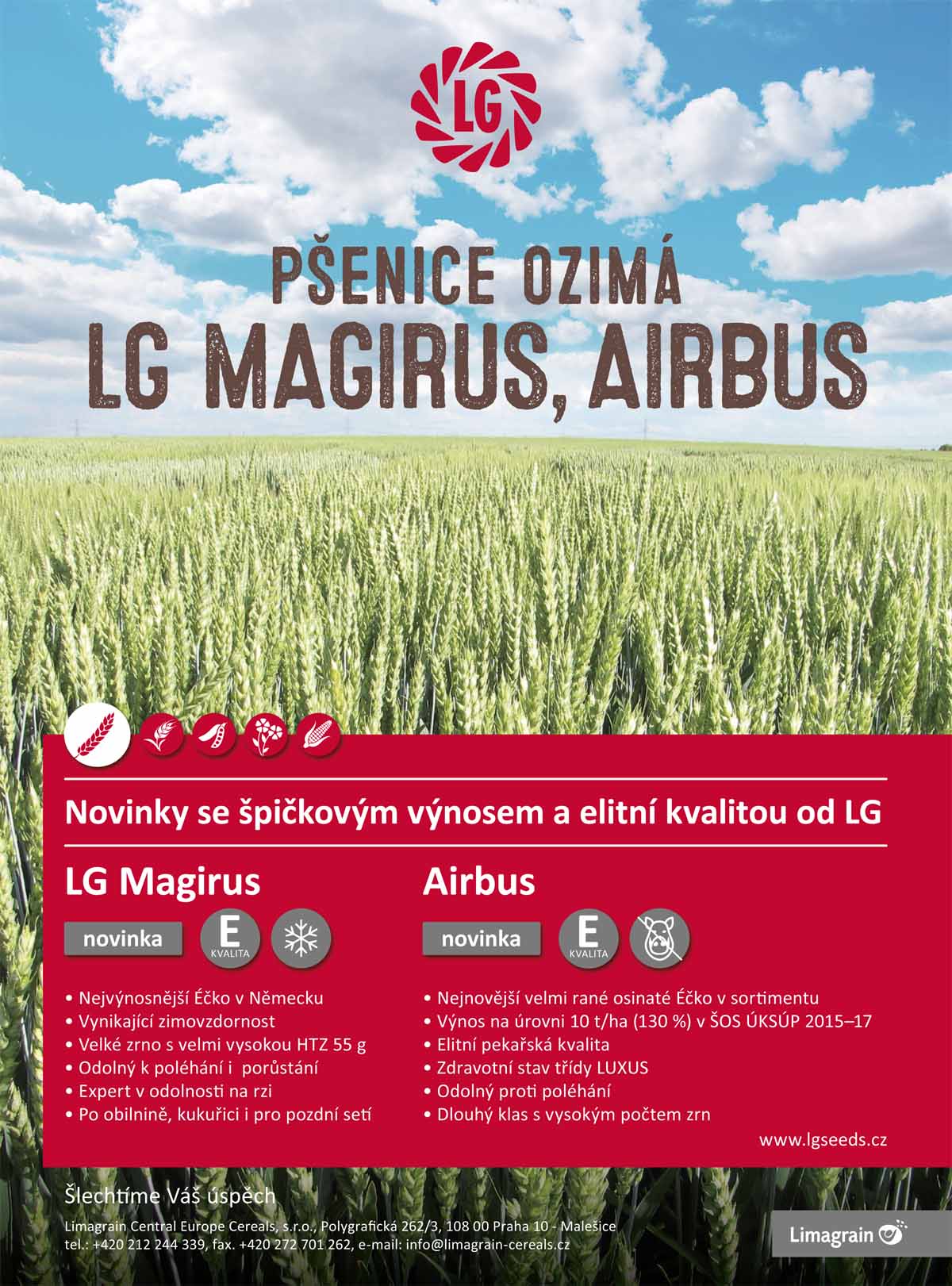Společnost Limagrain Central Europe Cereals, s.r.o. přichází pro nastávající podzimní sezónu se dvěma novými odrůdami pšenice ozimé s elitní pekařskou kvalitou E - LG Magirus a Airbus.