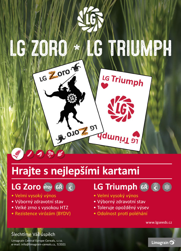 LG Zoro je přelomová odrůda, která v sobě zahrnuje rezistenci proti BYDV a zároveň dosahuje špičkových výnosů. V registračních zkouškách ÚKZÚZ v letech 2017–19 překonal rezistentní kontrolní odrůdu o 17 %. Zároveň překonal i výnos standardních kontrolních odrůd KWS Meridian a Titus, a to o 5,7 % v ošetřené variantě pěstování. Tím se LG Zoro zařadil mezi nejvýnosnější odrůdy registrované v ČR. Vynikající výnos potvrdil i ve zkouškách pro SDO v roce 2020. V neošetřené variantě dosáhl výnosu 10,92 t/ha a v ošetřené 11,03 t/ha. Ve čtyřletém průměru SDO 2017–20 (graf 1) je LG Zoro s výnosem 117 % druhou nejvýnosnější doporučenou odrůdou v ošetřené variantě.