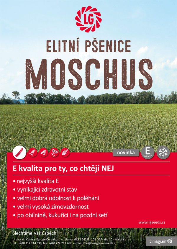 Limagrain Central Europe Cereals, s.r.o. v České a Slovenské republice zastupuje novou odrůdu Moschus s elitní pekařskou kvalitou E. Tato odrůda pochází z německého šlechtění společnosti Strube Research GmbH. Vynikající kvalita této odrůdy je charakterizována unikátní kombinací kvalitativních znaků, zdravotního stavu a výnosu.