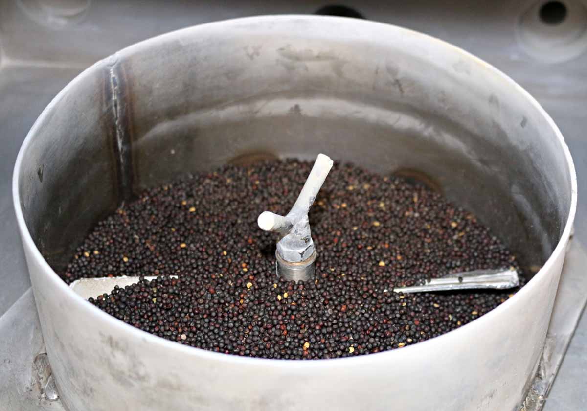 Míchací zařízení pro ošetření osiva řepky je součástí vakuového recipientu