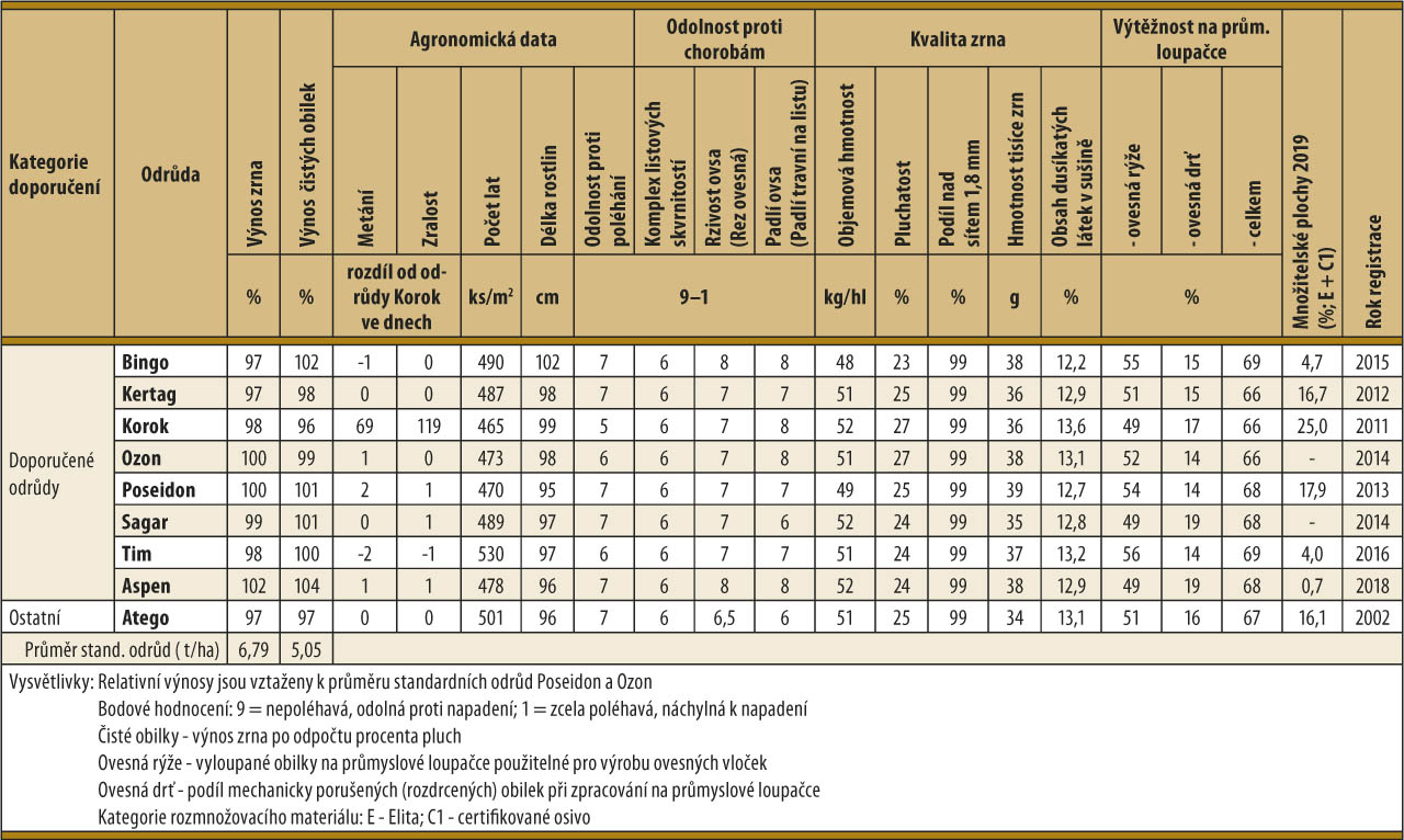 V roce 2019 bylo pro Seznam doporučených odrůd (SDO) zkoušeno devět odrůd ovsa setého na devíti lokalitách.