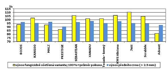 100 % = průměr všech hodnocených odrůd ze třech lokalit |