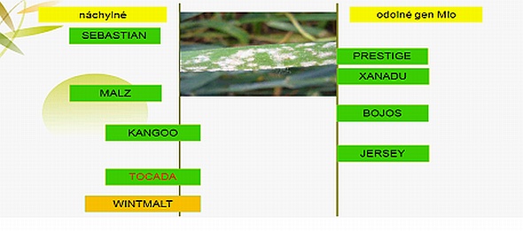 - středně odolná proti napadení padlím travním, středně odolná proti napadení rzí ječmene, středně až méně odolná proti napadení komplexem hnědých skvrnitostí, středně odolná proti napadení rhynchosporiovou skvrnitostí.