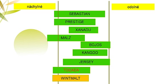 Jak ukazuje graf 1, některé nové odrůdy dobře reagují na vyšší intenzitu vstupů a výnosově překonávají starší preferované odrůdy, ale své kvality musí také ještě potvrdit ve sladovnických zkouškách.