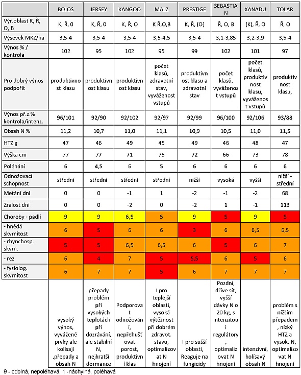 - rostliny středně vysoké až vysoké, odrůda středně odolná proti poléhání, středně odolná proti lámání stébla. Zrno velmi velké, podíl předního zrna středně vysoký.