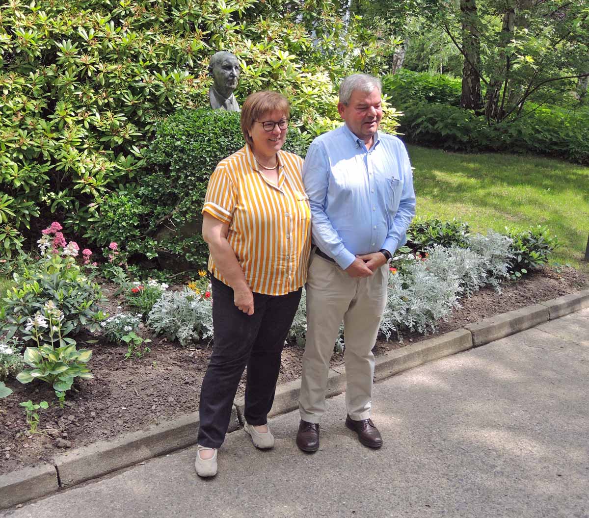 Dietmar Brauer spolu s manželkou představili historii společnosti u busty Hanse Lembkeho, který zde započal se šlechtěním řepky