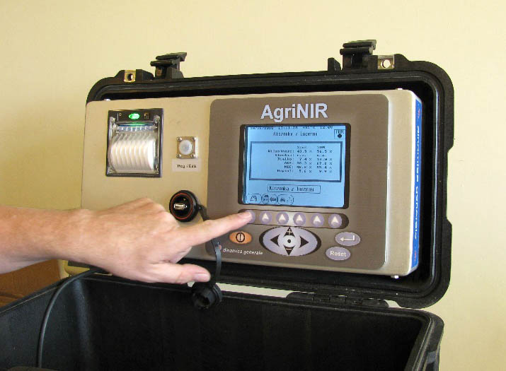 Celkem lze využít 8 programů pro každý způsob sklizně a způsobu analýzy. V poslední době, kromě chemické analýzy vzorků, se velmi rozšířila metoda stanovení sušiny a organických živin metodou NIRs , pomocí přístroje AgriNIR (obr. 1 a 2), kdy u odebraných vzorků lze prakticky ihned stanovit sledované ukazatele obsahu sušiny a organických živin včetně stravitelnosti NDF a OH. Zjištěné hodnoty lze napsat do jednoho z 8 vytvořených programů, které vyhodnotí potřebné další ukazatelé.