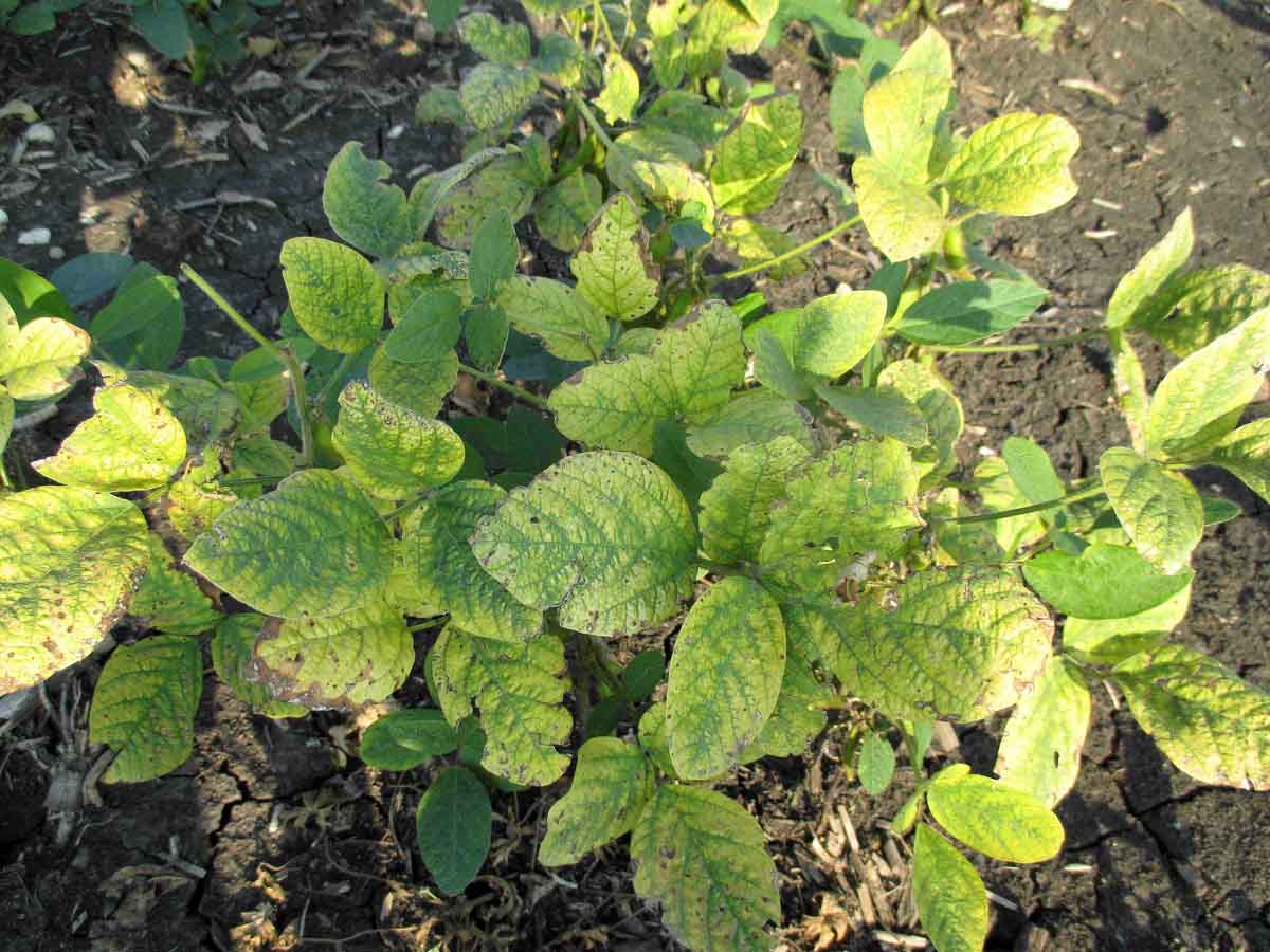 Obr. 2: Rostliny sóji po krupobití (foto: V. Vozák)