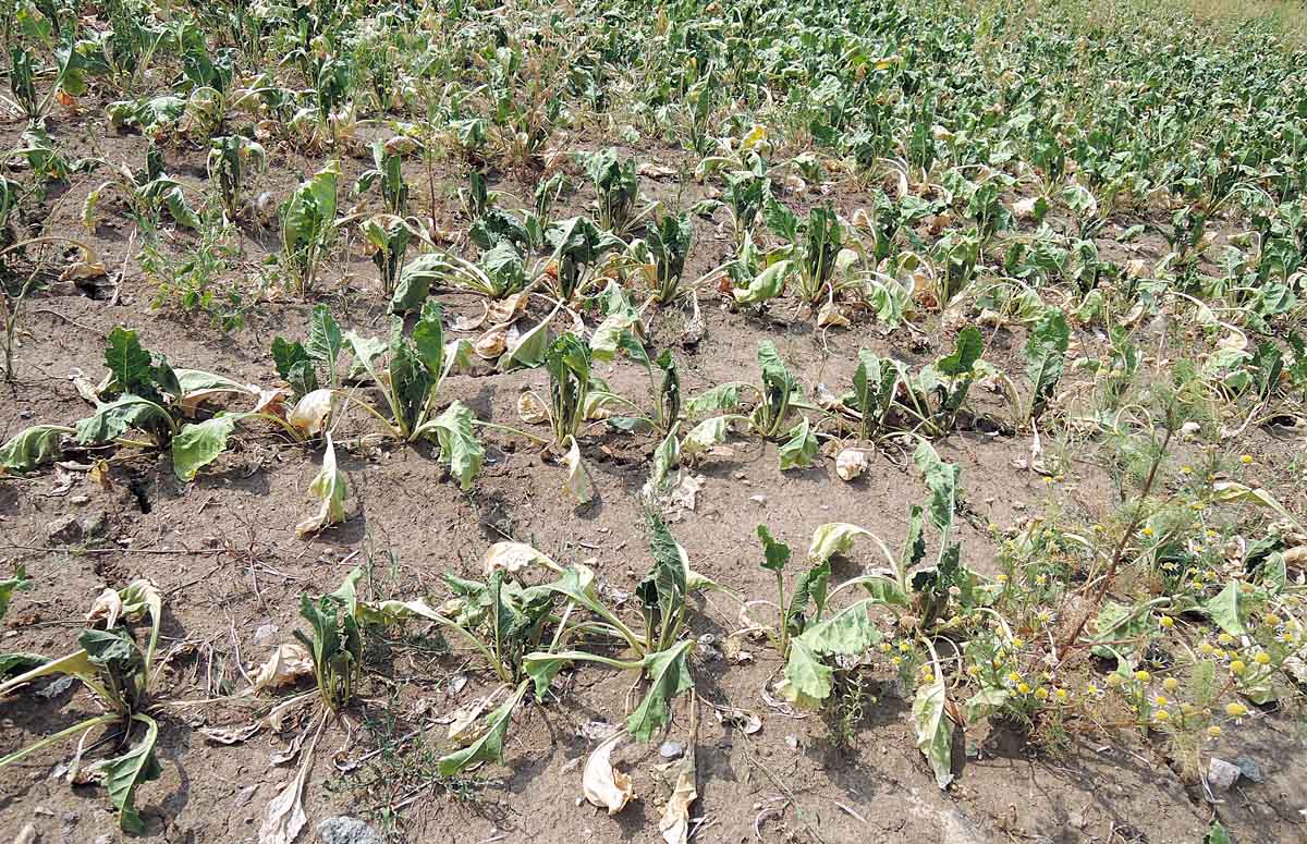 Vláhový deficit poškodil cukrovku (srpen 2015), poškozené listy pak více prodýchají