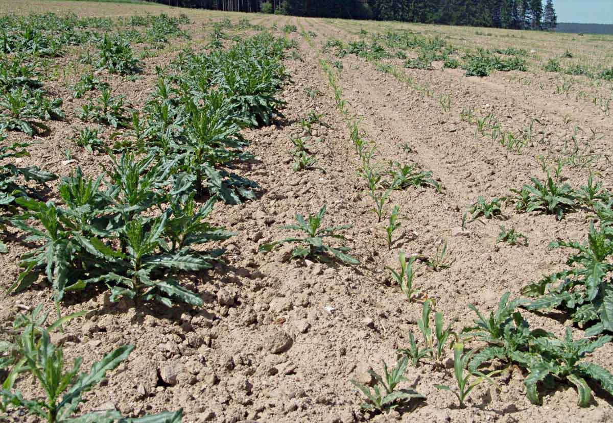 Obr. 8: Pcháč rolní je vhodné řešit v obilní předplodině, kde je herbicidní regulace efektivnější a obvykle také selektivnější