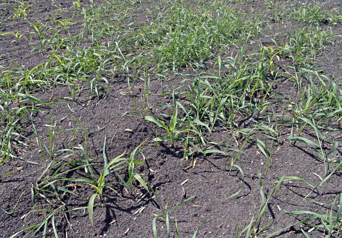 Obr. 1: Selhání preemergentního ošetření na ježatku kuří nohu