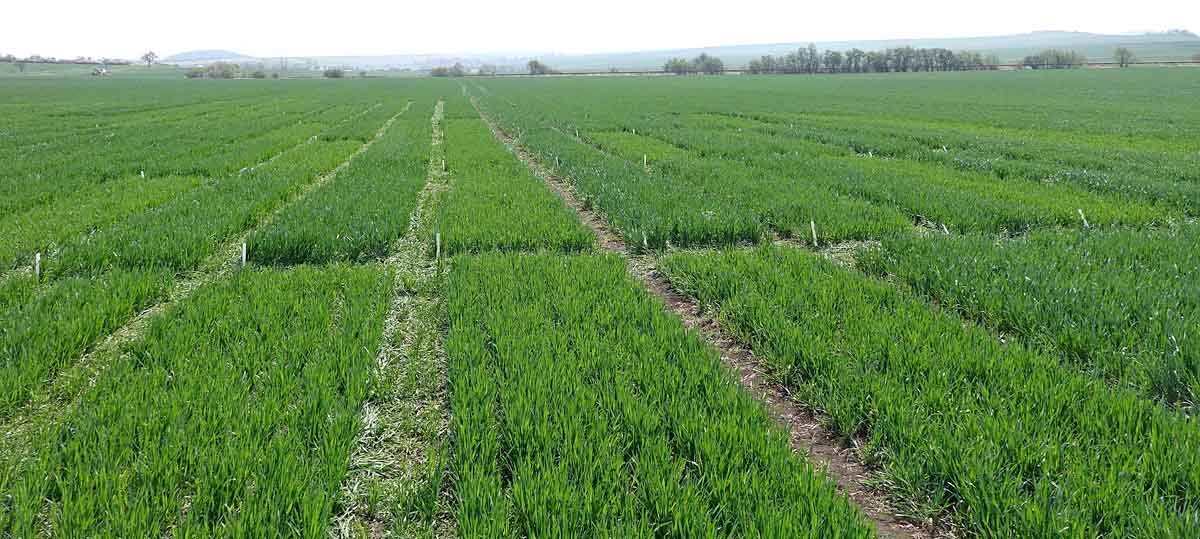 Obr. 5: Poškození některých parcel ozimé pšenice v pokusu s herbicidy proti sveřepu jalovému; krátce po ošetření došlo k výraznému ochlazení, které zpomalilo metabolizaci herbicidů v rostlinách pšenice