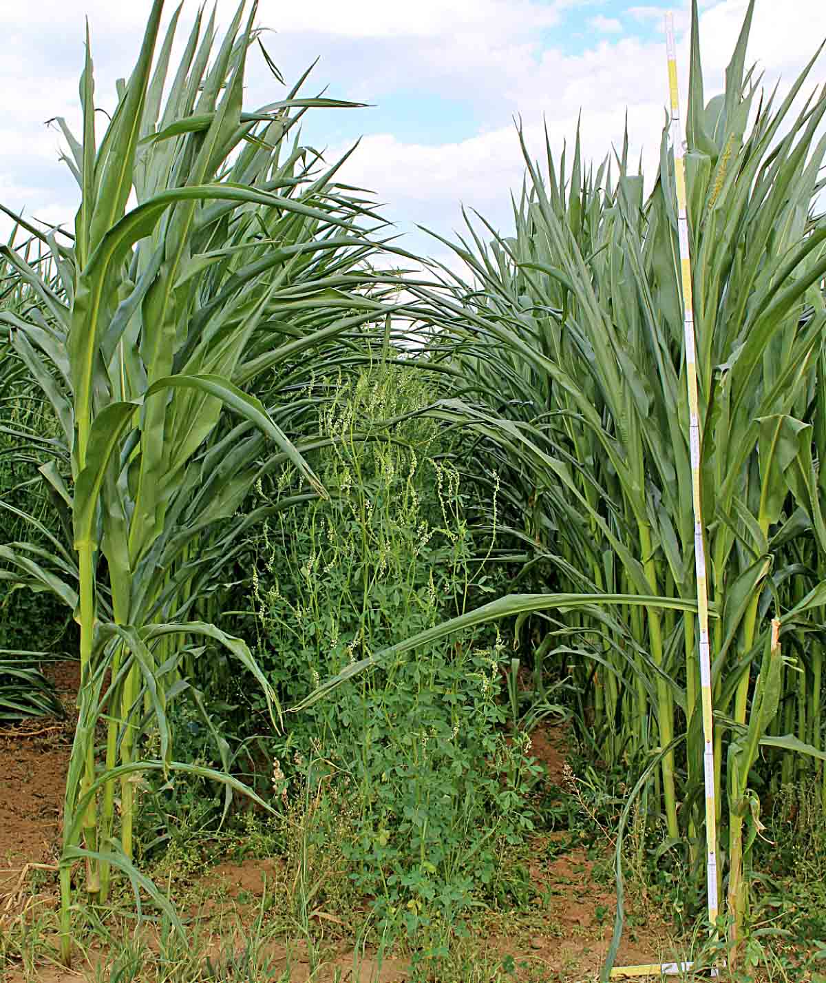 Obr. 2: Pěstování komonice bílé ve smíšené kultuře s kukuřicí