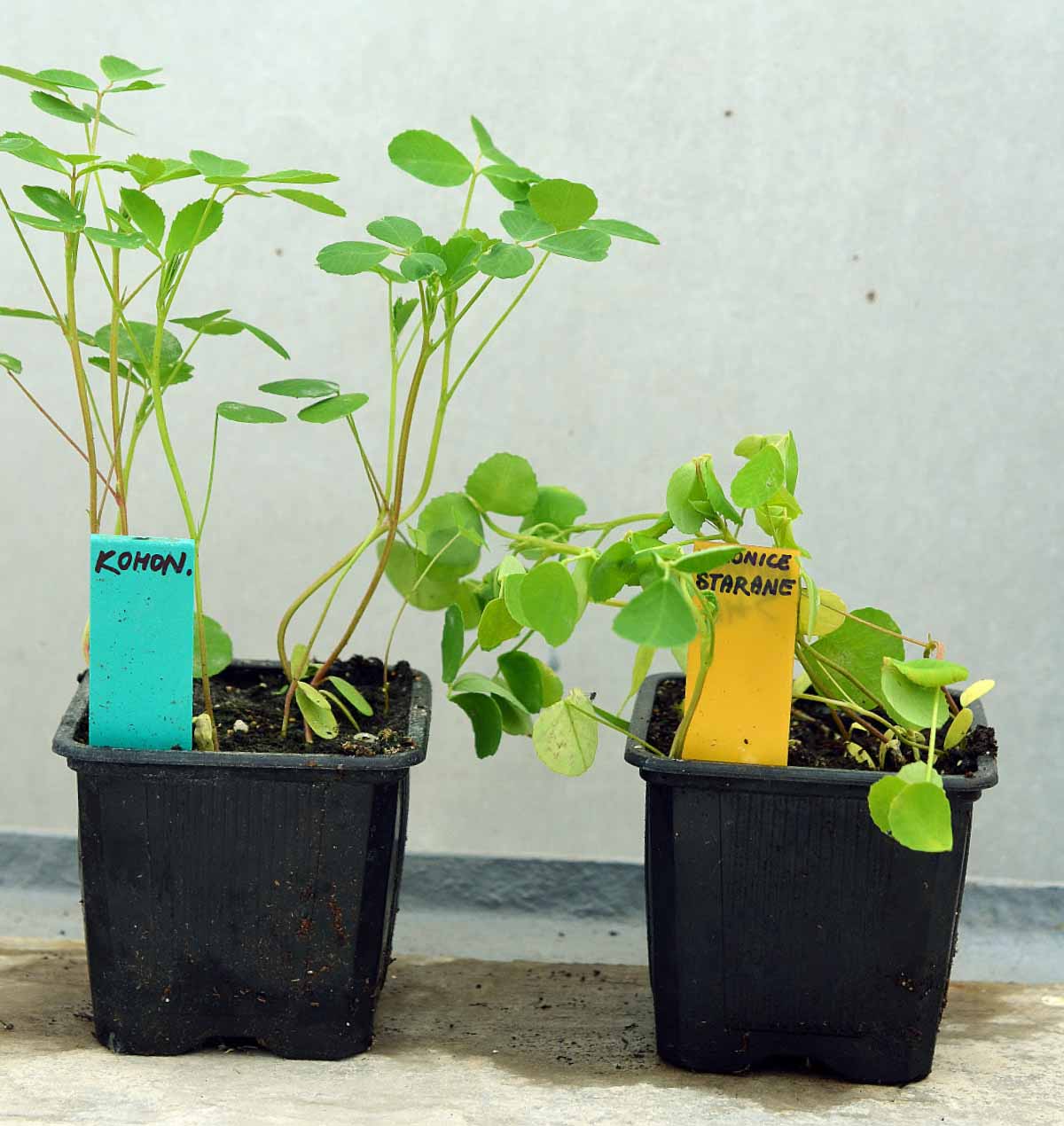 Pro nádobový pokus byly vybrány 4 herbicidní přípravky registrované do kukuřice: Wing-P, Nisshin 4 SC, Laudis a Starane Forte a 2 přípravky, které do kukuřice registrovány nejsou: Goltix Titan a Autor. Všechny přípravky byly aplikovány na komonici odrůdy Meba v růstové fázi 2 pravých listů. Přípravek Wing-P s účinnou látkou dimethenamid-P s využitím proti dvouděložným plevelům a ježatce kuří noze projevil v množství 2,0 l/ha fytotoxicitu (listové deformace a zakrslost) od 15 do 20 %. Deformacemi i zakrslostí se také projevil Starane Forte s účinnou látkou fluroxypyr v dávce 0,6 l/ha, celková fytotoxicita činila až 75 %. Ostatní použité přípravky způsobily na komonici chlorózy listů. Goltix Titan (účinná látka chinmerak a metamitron) určený na regulaci dvouděložných jednoletých plevelů v dávce 1,5 l/ha se z hlediska selektivity projevil nejlépe. Počáteční lehké chlorózy (10–15 %) během jednoho měsíce úplně vymizely. Chlorotické poškození rostlin kolem 15 % zůstalo viditelné na variantách ošetřených přípravky Nisshin 4 SC (nikosulfuron) v dávce 1,0 l/ha, Laudis (tembotrion) v dávce 1,0 l/ha a Autor (metazachlor) v dávce 1,5 l/ha. Po prvotních pokusech jsme z hlediska selektivity pro použití v komonici zcela vyloučili přípravek Starane Forte. Přípravek Goltix Titan bude za účelem hodnocení selektivity zkoušen dále v polních pokusech v čistosevu.