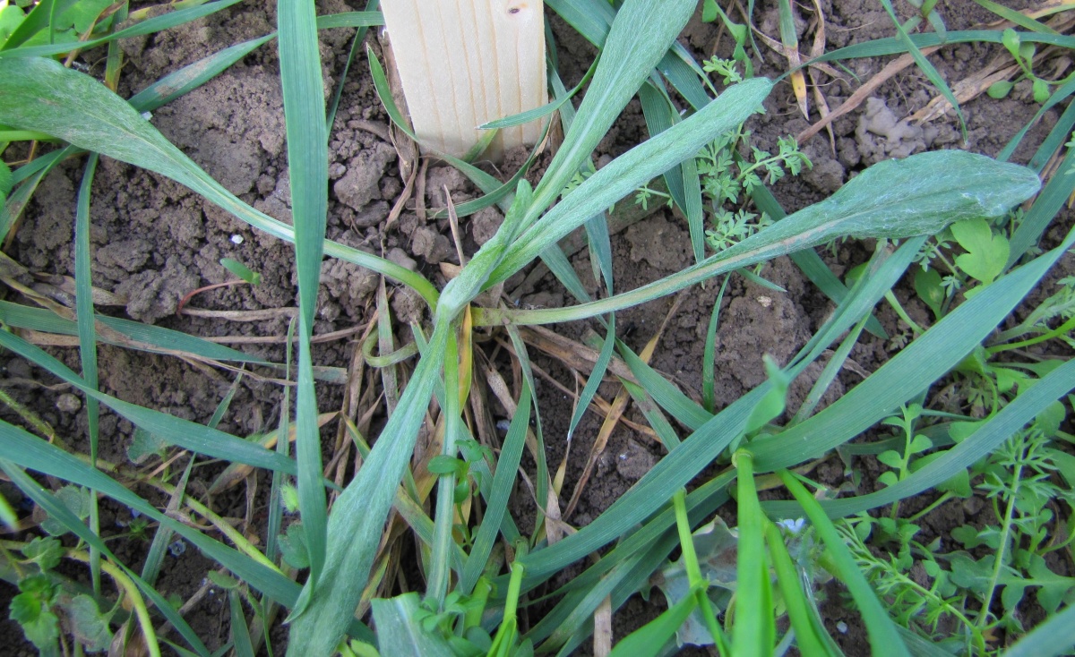 V době aplikace se na pokusné lokalitě vyskytovaly následující plevelné druhy: výdrol řepky ozimé, mák vlčí, heřmánkovec nevonný, svízel přítula, úhorník mnohodílný, chrpa modrá, penízek rolní a chundelka metlice (obr. 9). Výskyt plevelů byl reprezentativní (vyšší než 5 ks/m2), většina plevelů byla v době aplikace v růstové fázi listové růžice, pouze penízek rolní byl ve fázi kvetení. Chundelka metlice se v době aplikace herbicidů nacházela v růstové fázi konec odnožování až počátek sloupkování.