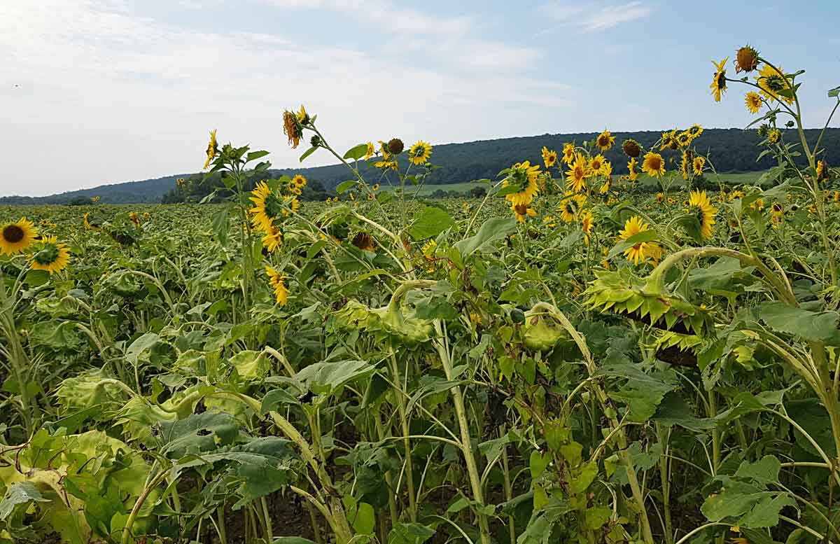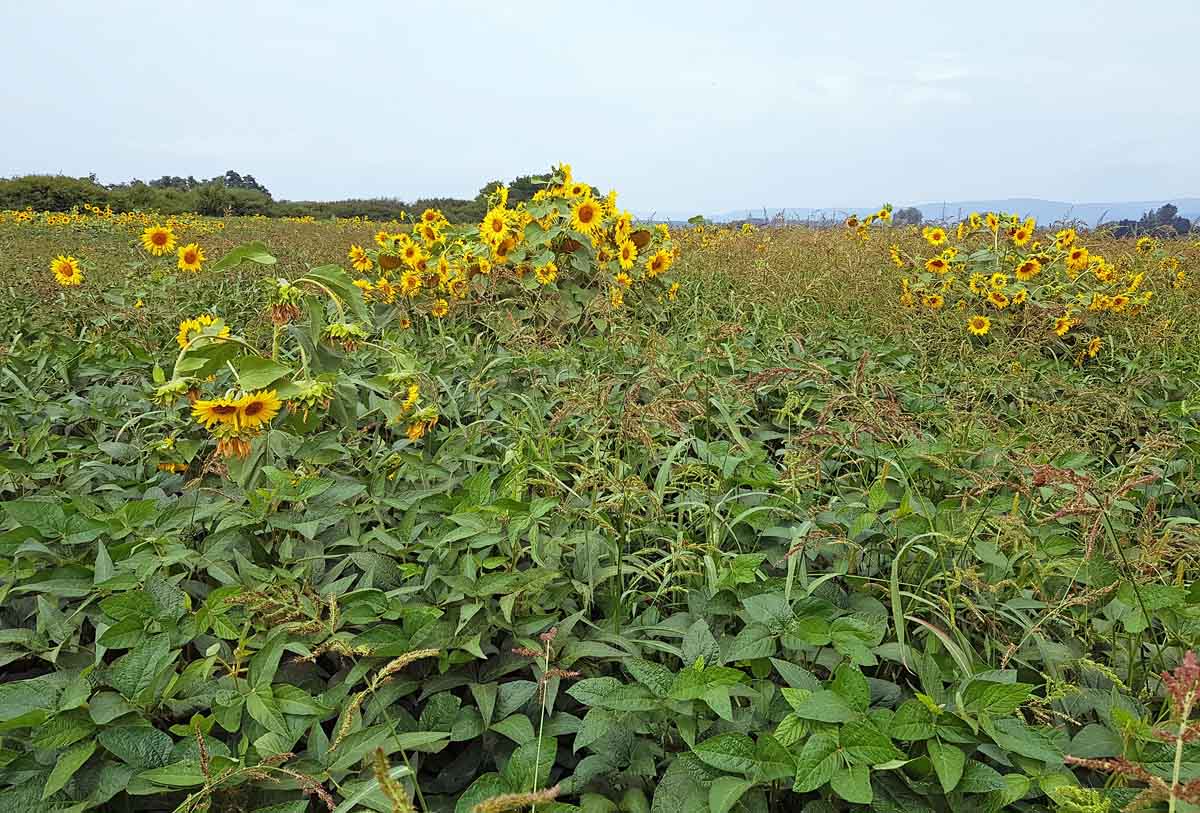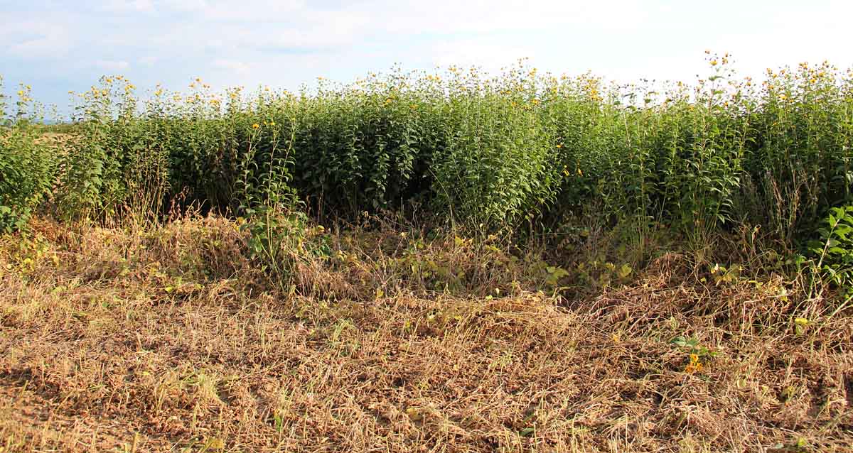 Slnečnica burinná v poraste kultúrnej slnečnice