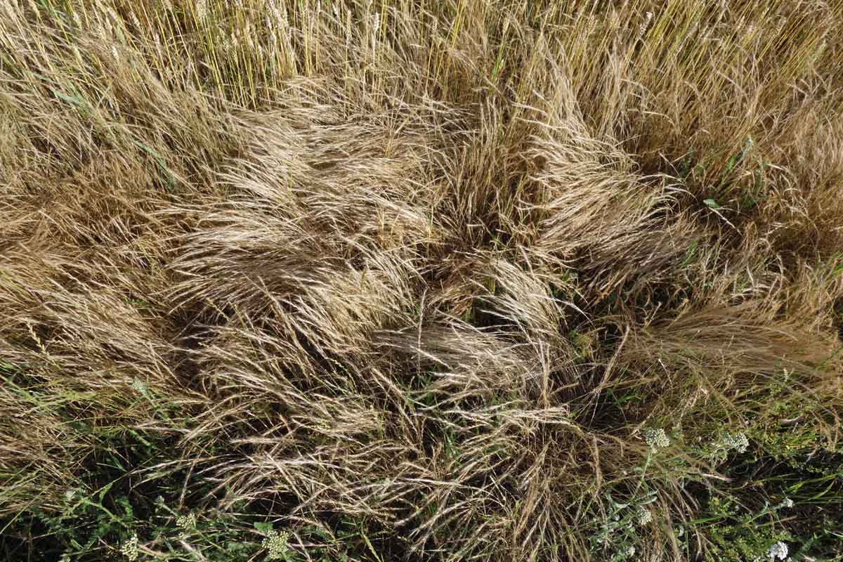 Obr. 4: Regenerující trs sveřepu jalového v porostu pšenice - absence orby a glyphosatového ošetření před založením porostu