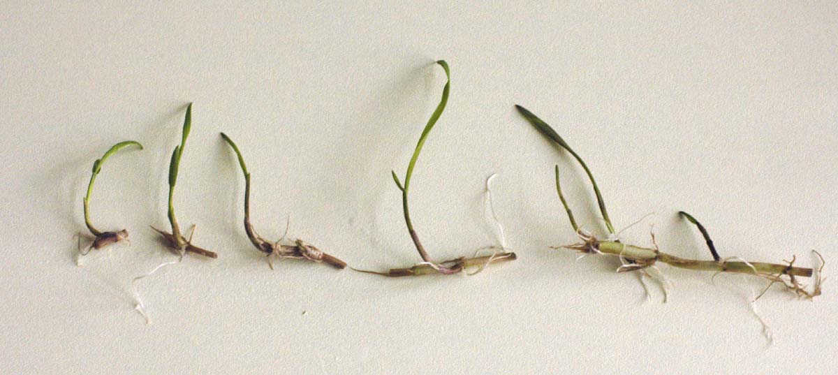 Tři měsíce stará rostlina pýru vytvořená ze segmentu oddenku