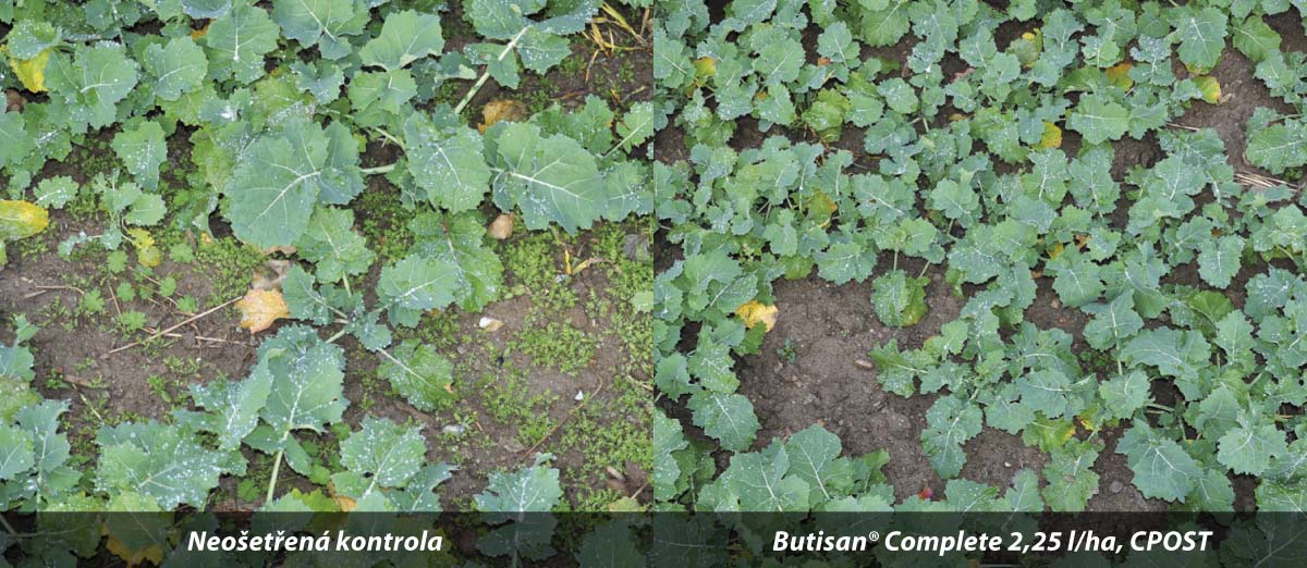 Přípravek Butisan® Complete se osvědčil na téměř všech farmách v České republice. Díky kombinaci tří účinných látek metazachlor, quinmerac a dimethenamid-P (příjem přes kořeny, hypokotyl i listy vzcházejících plevelů) nabízí načasování aplikace od preemergentního až po časně postemergentní termín. Butisan® Complete se vyznačuje vynikající selektivitou k pěstované řepce. Doporučená dávka přípravku Butisan® Complete je 2,25 l/ha. Díky ideálně zvolenému poměru tří účinných látek je dosaženo vynikající účinnosti na široké spektrum plevelů (v doporučené dávce obsahuje 675 g metazachloru, 225 g quinmeracu a 225 g dimethenamidu-P na hektar). Přípravek je nejkoncentrovanějším herbicidem na našem trhu, a proto zajišťuje vysokou účinnost i za sucha.