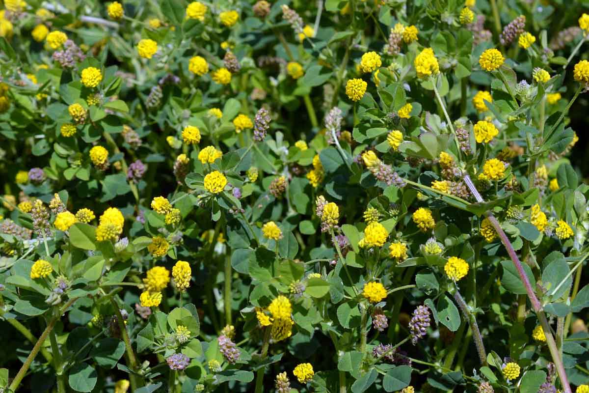 Tolice měňavá (Medicago x varia Martyn) je kříženec mezi vojtěškou setou a vojtěškou srpovitou.