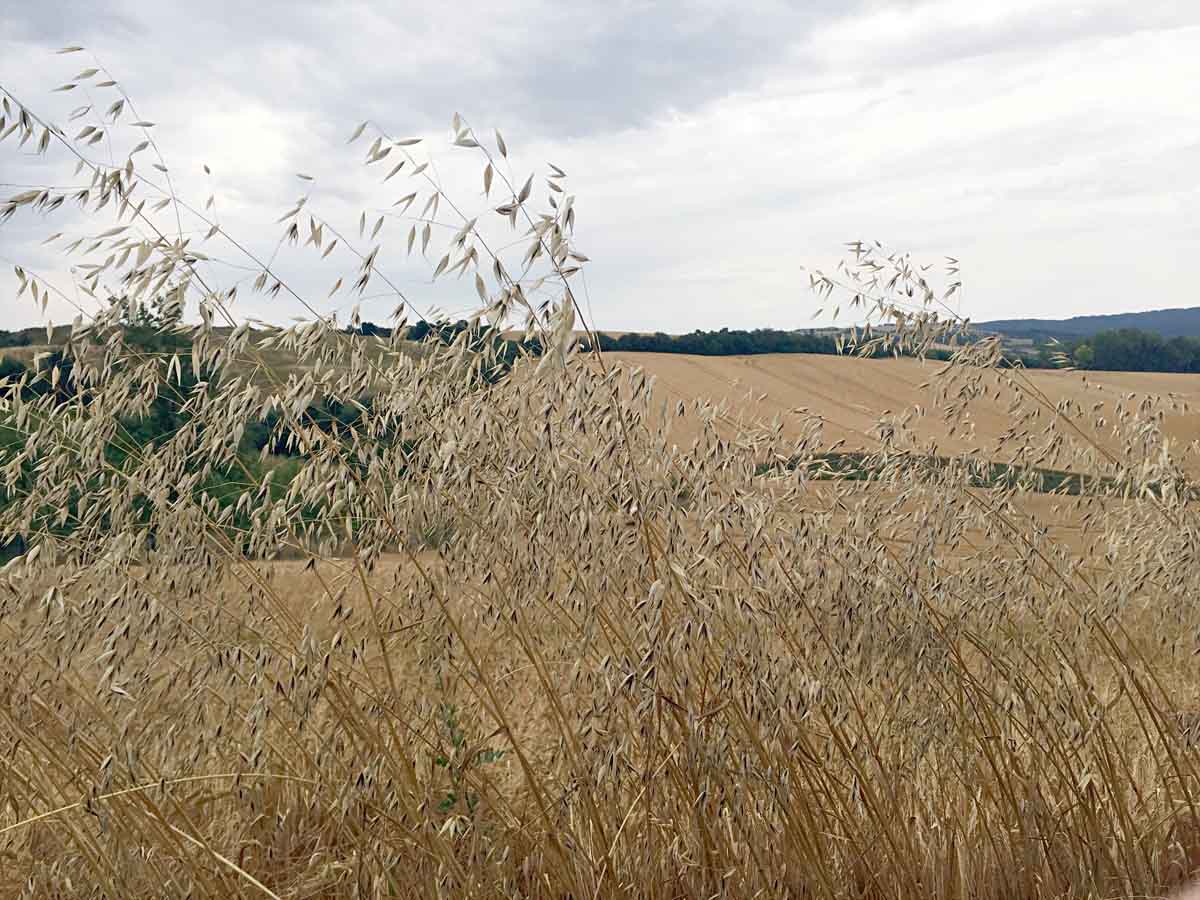 Rostliny ovsa hluchého, na který postupně dozrávají obilky (Avena fatua)