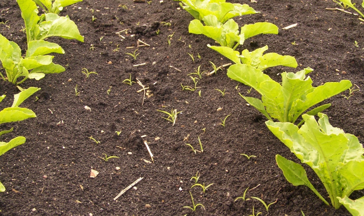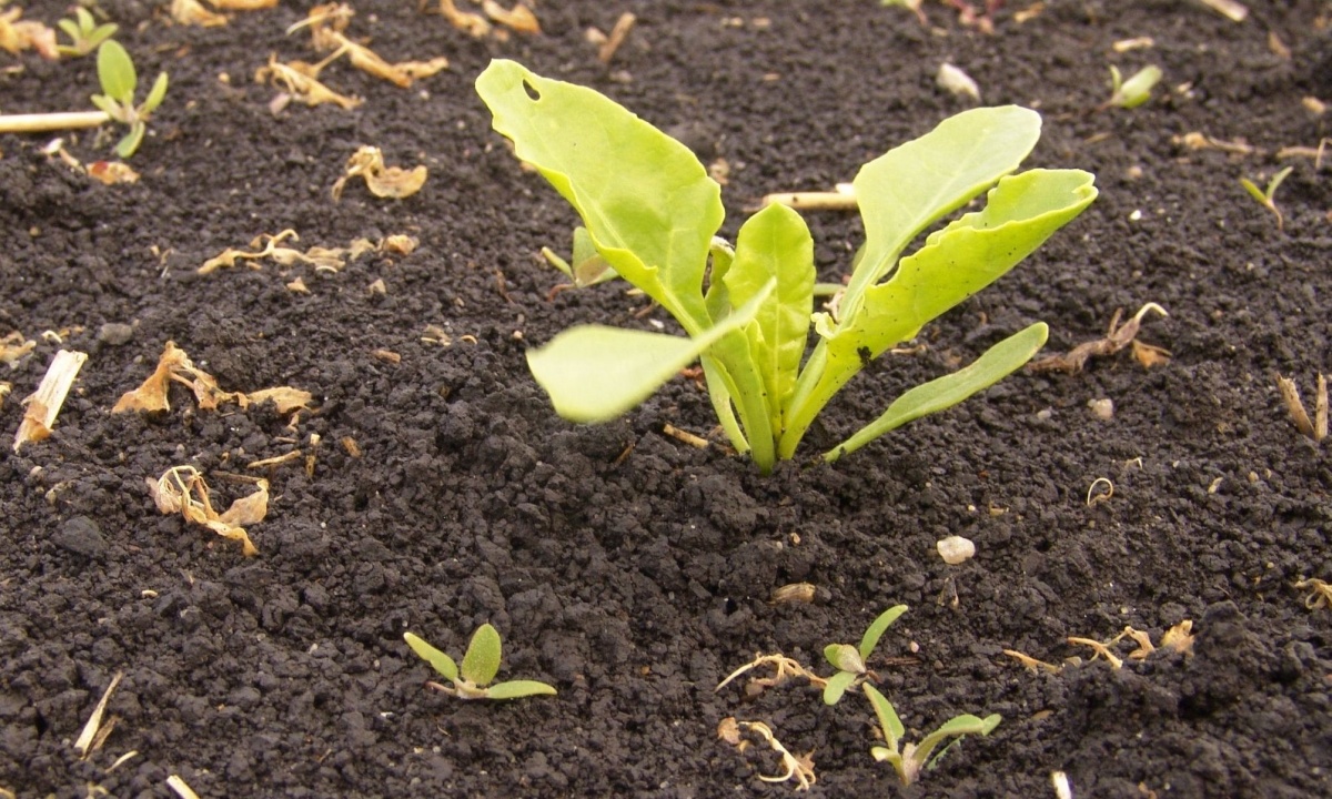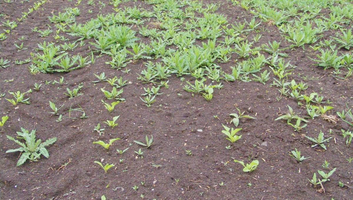 Obr. 7: Plevelná řepa je morfologicky velmi podobná cukrové řepě, přičemž o její přítomnosti na pozemku svědčí její vzcházení mimo vyseté řádky