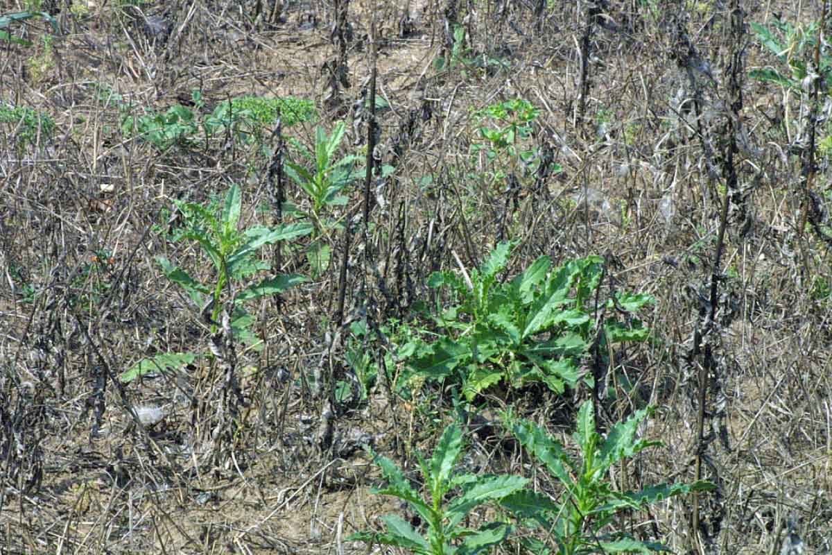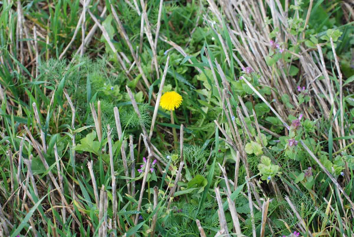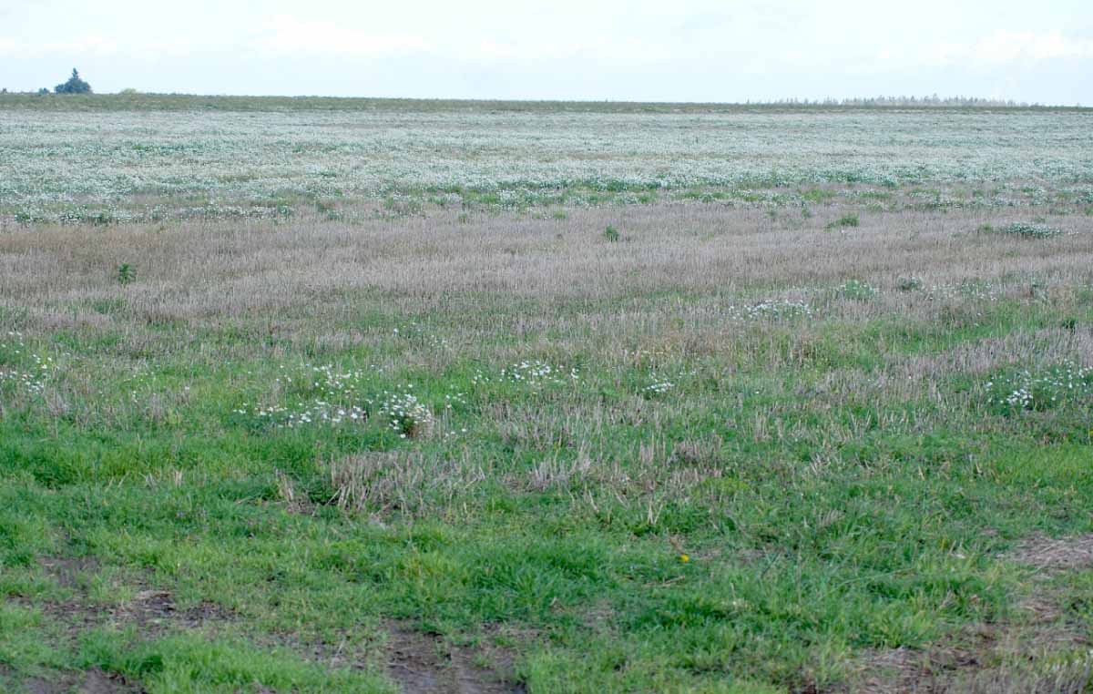 Zaplevelení na strništi bývá někdy nerovnoměrné
