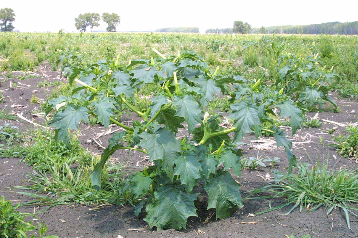 V teplejších oblastech se na strništi velmi často vyskytuje durman obecný