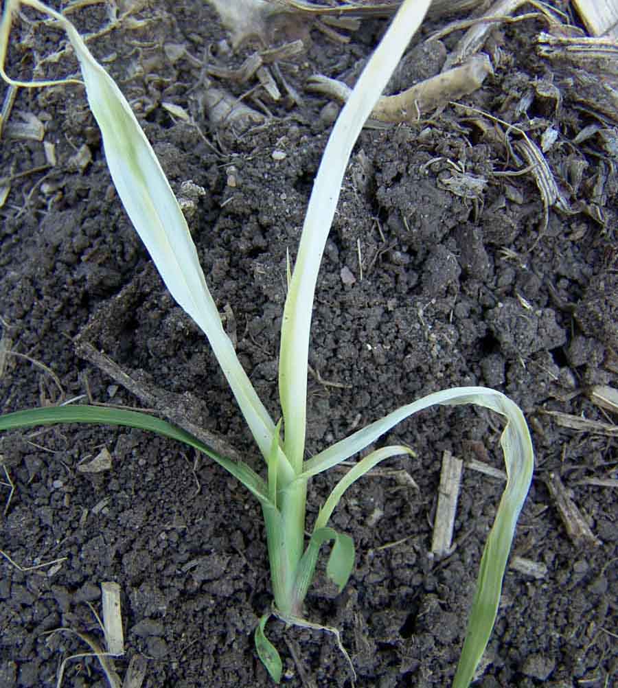 V kukuřici je sice možné k regulaci pýru použít několik sulfonylmočovin, je však třeba počítat s tím, že pýr mimo silného konkurenčního působení (zejména o vodu) vylučuje do půdy také látky, které inhibují růst kukuřice (žloutnutí listů v ohniscích zaplevelení), přičemž tyto látky jsou do půdy uvolňovány ještě několik týdnů po jeho odumření (obr. 5).
