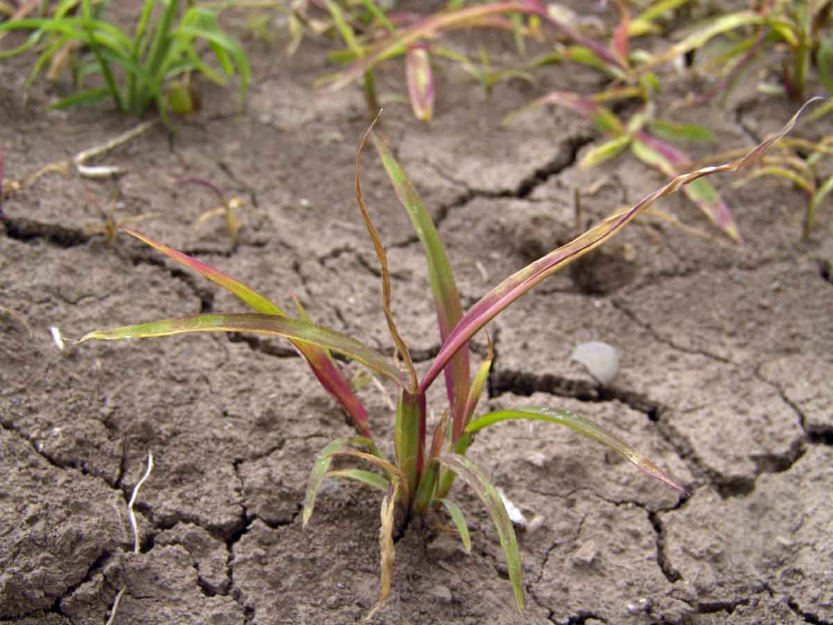 Obr. 1: Za sucha dochází u půdních herbicidů velmi často k selhání účinnosti na ježatku kuří nohu, zejména pokud jsou aplikovány preemergentně