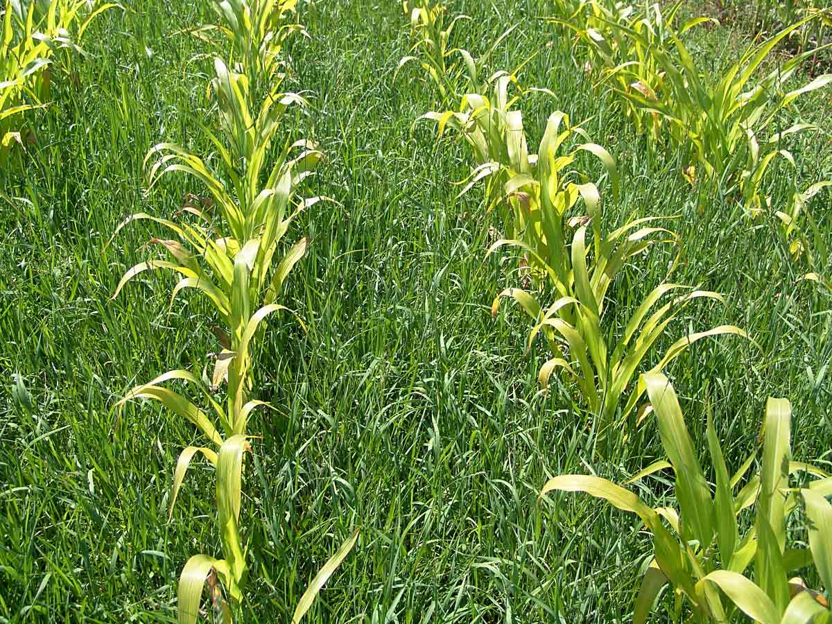 Obr. 2: Ježatka kuří noha, která má již založeny odnože. je mesotrionem již obvykle nedostatečně potlačena (dochází obvykle pouze k odumření hlavního stébla), výjimkou jsou herbicidy formulované jako suspenzní koncentráty s obsahem účinné látky 100 g/l (např. Callisto 100 SC)