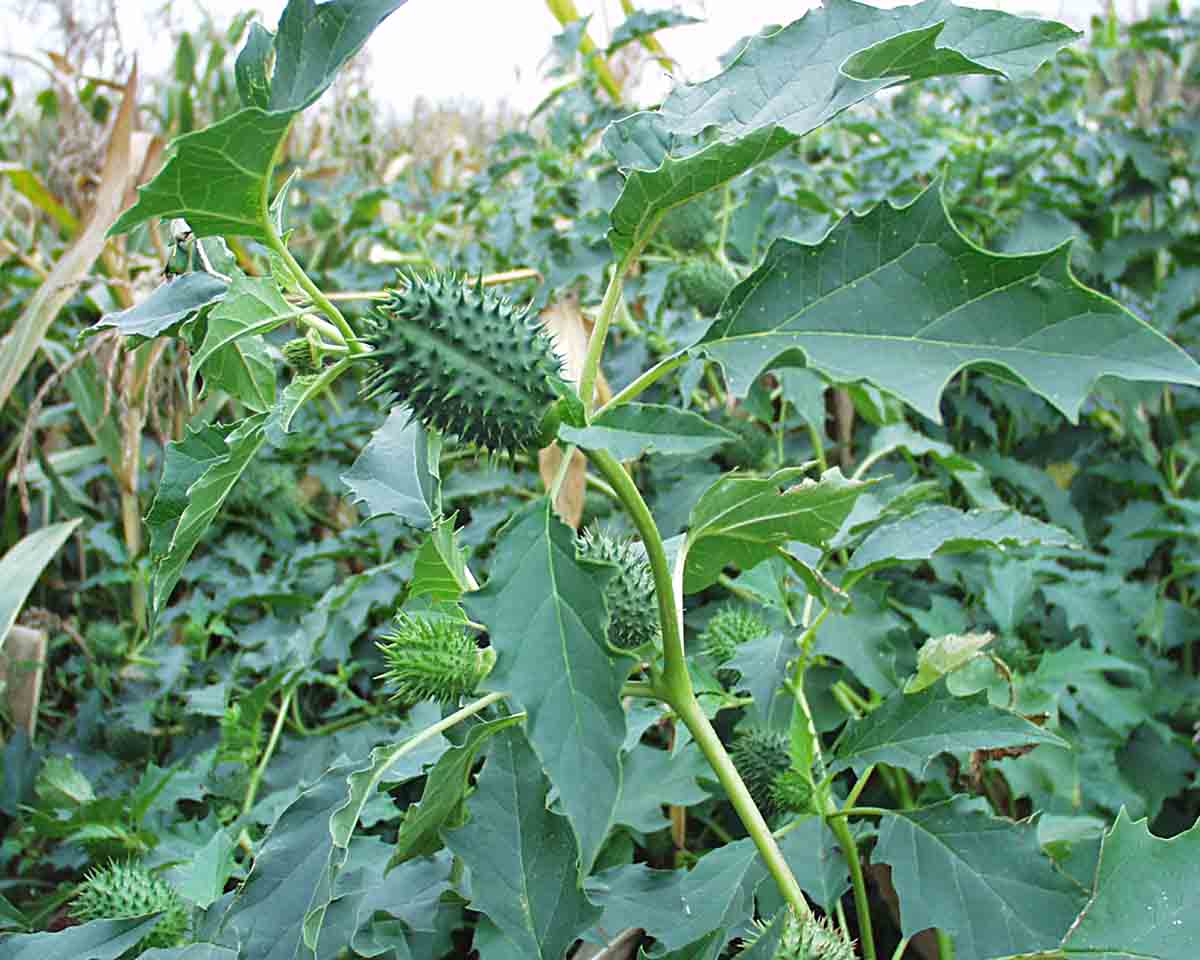 K pozdně jarním plevelů a jedovatým plevelům patří durman obecný (Datura stramonium)