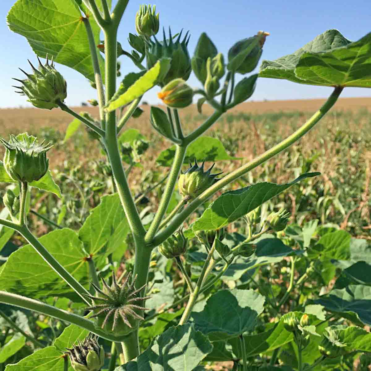 Invazním pozdně jarním druhem je mračňák Theophrastův (Abutilon theophrasti)