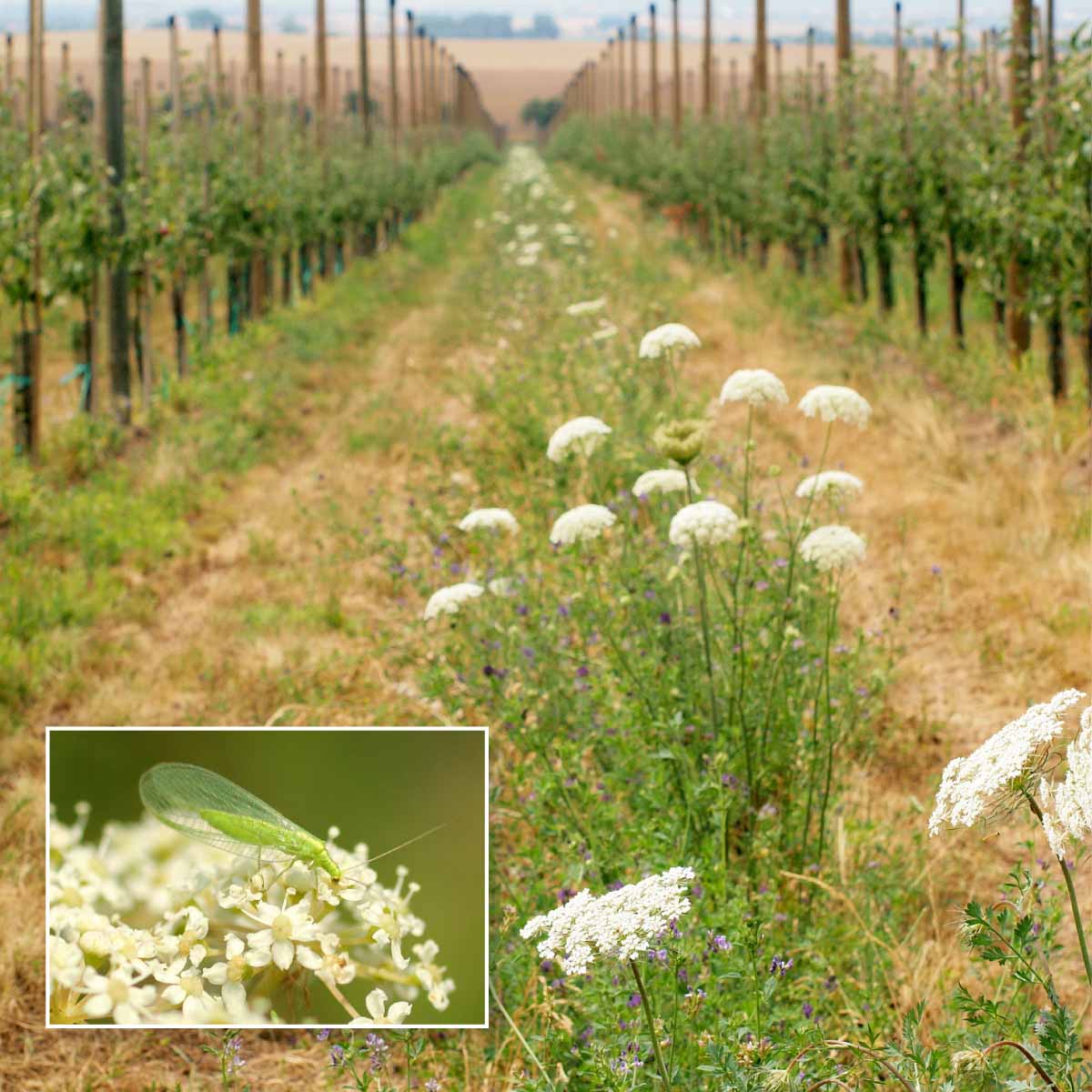 Udržování pásů kvetoucích bylin v meziřadí je efektivní metodou podpory výskytu přirozených nepřátel škůdců