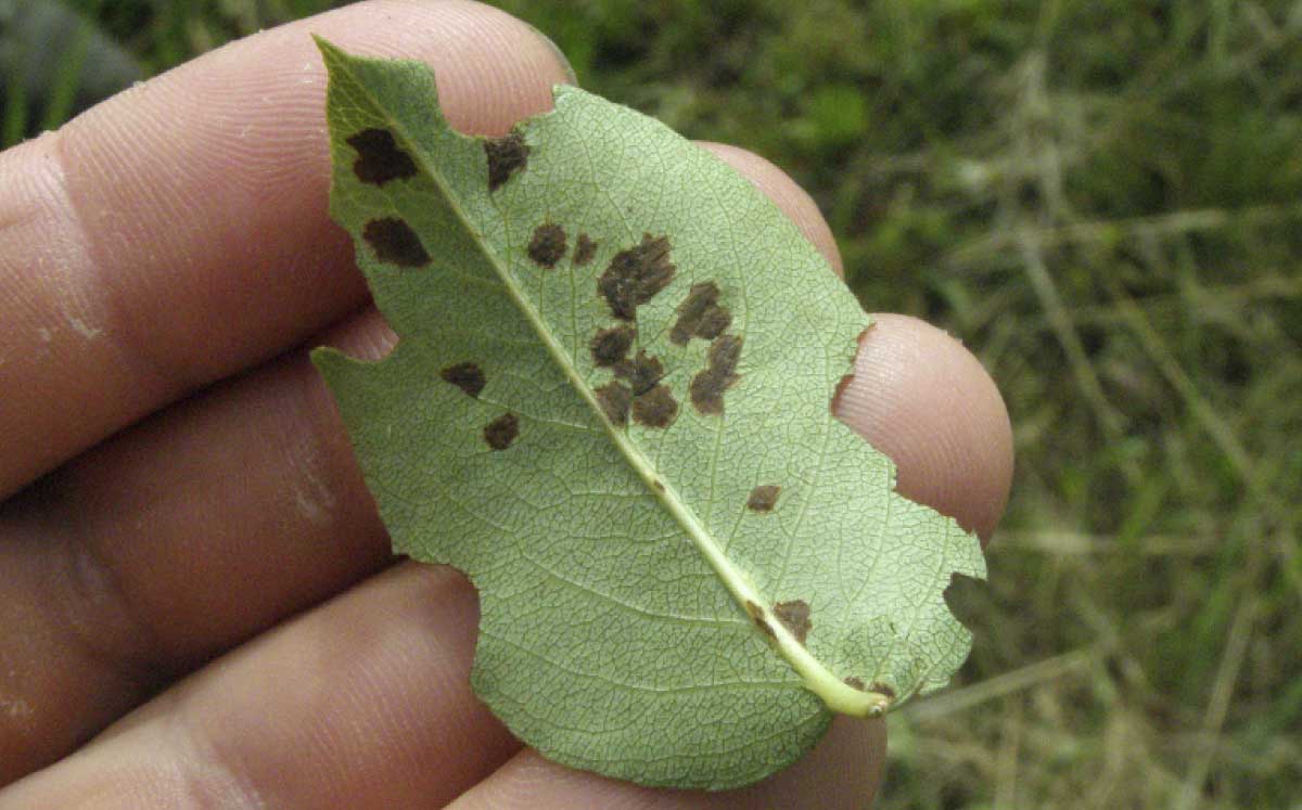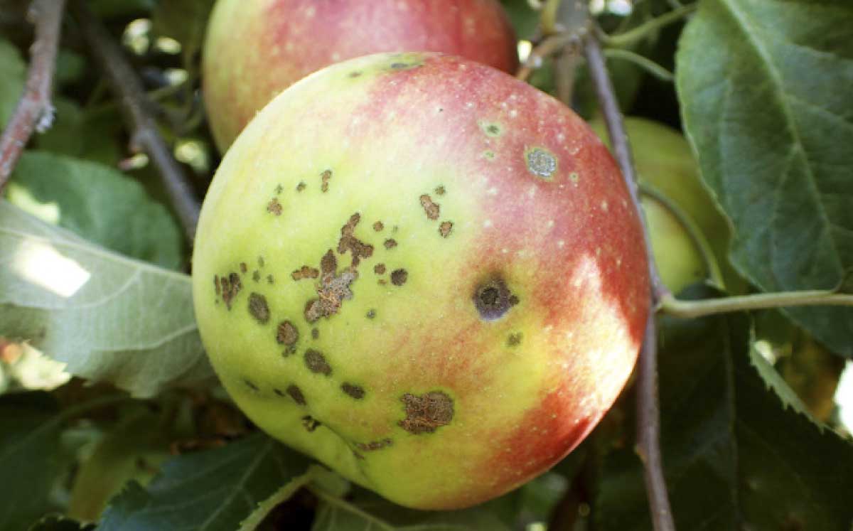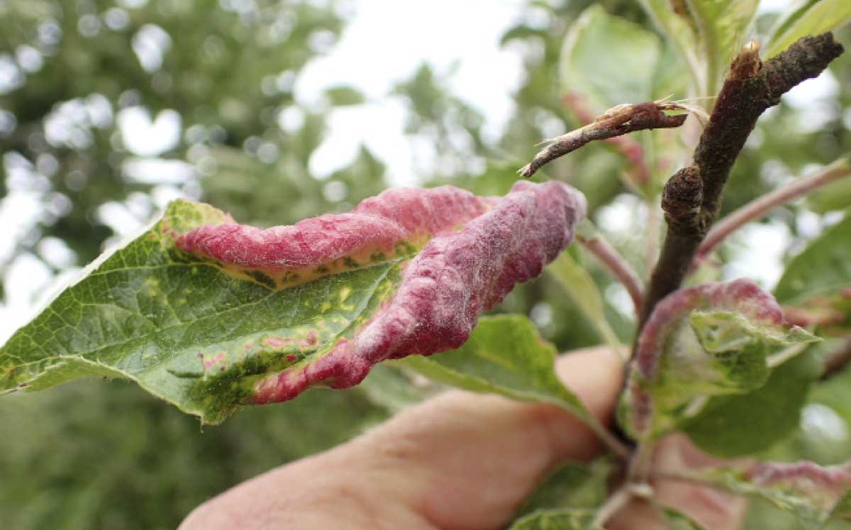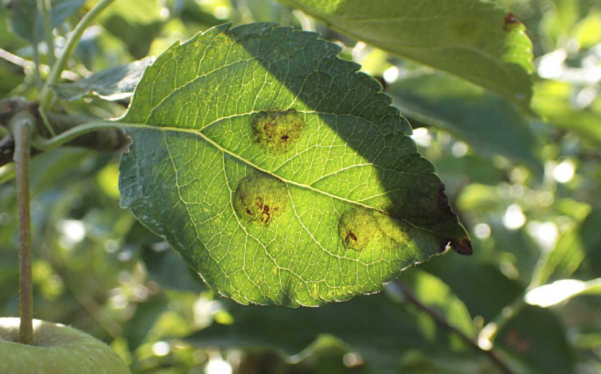 Strupovitost jabloně - projevy sekundárních infekcí na počátku léta